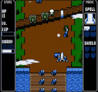 - arcade shmup w/ light RPG elements and fantasy theme, chaining system, background interactions